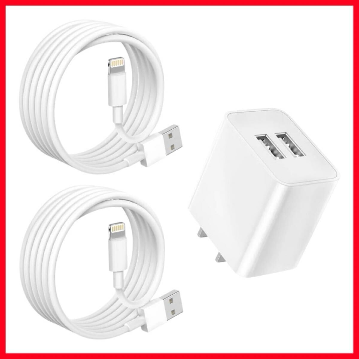 - iPhone 充電器 USB 充電器 2ポート 12W ACアダプター 【MFi/PSE認証済み】 2M iPhone 充電ケーブル ライトニング