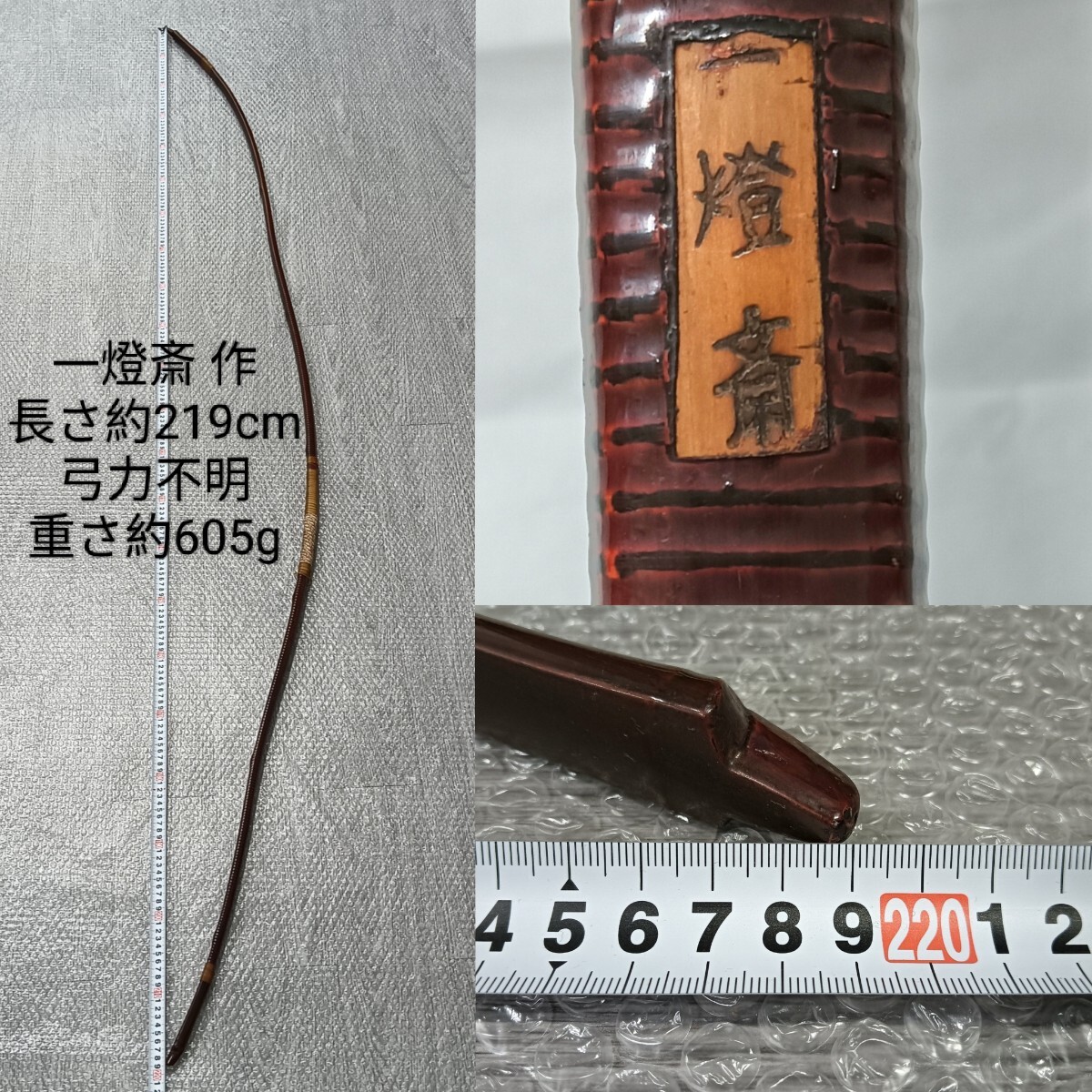 - 【A4063】時代弓道具 一燈斎作 竹弓 和弓 弓具 武具 中古品 現状品 長さ約219cm 弓カ不明 重さ約605g
