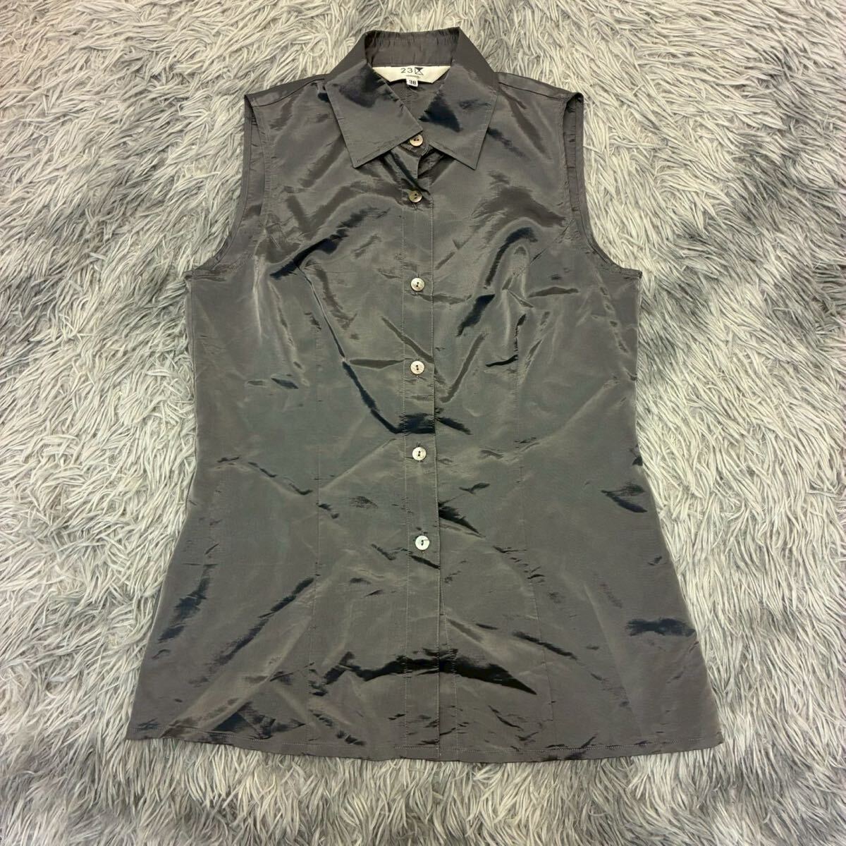 - 23区 ニジュウサンク シャツ ノースリーブ オンワード樫山 グレー 薄手 サイズ38