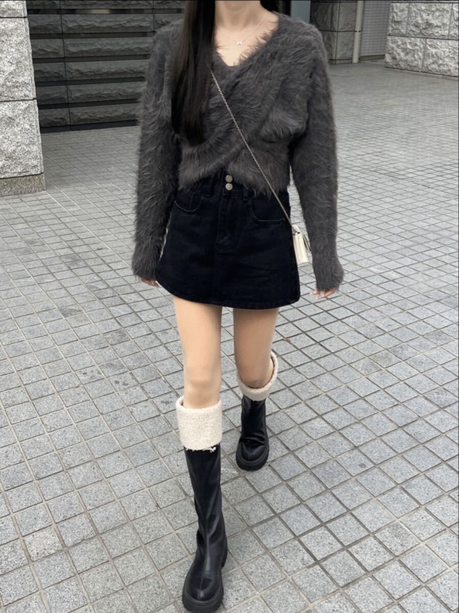 - GRL 前後2way シャギークロスニットトップス チャコール F フリーサイズ