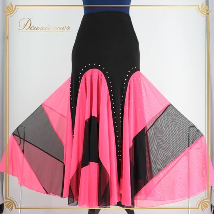 - 社交ダンス 衣装 スタンダード スカート レッスンウェア レディース オールシーズン ICHIOKU イチオク 黒 ピンク ラインストーン