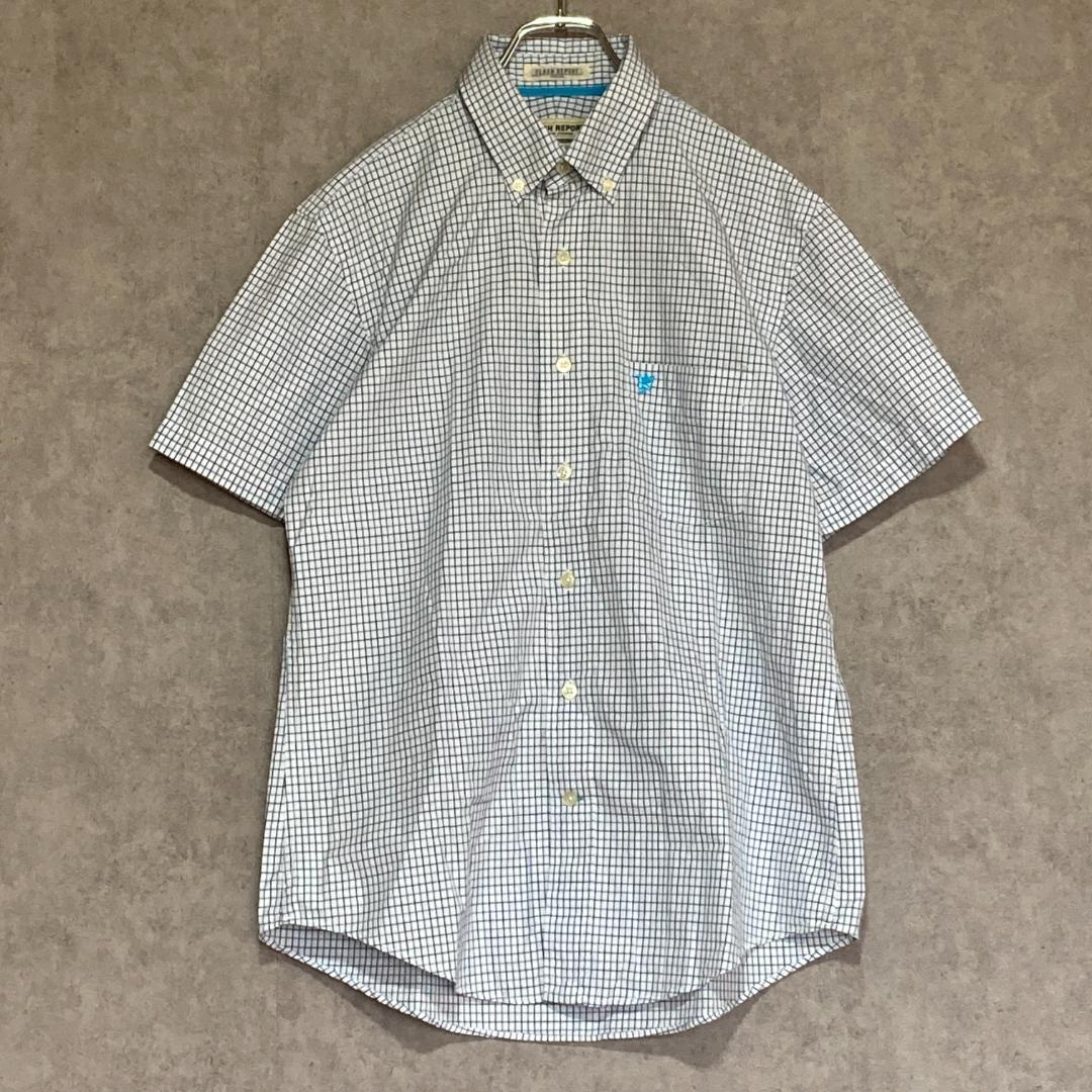 - フラッシュリポート(M)半袖ボタンダウンシャツ*チェック*胸ポケット*刺繍*綿