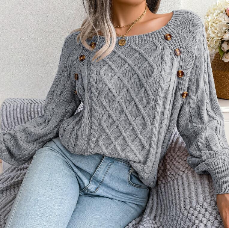 - M0925 ニットセーターレディース●着心地抜群 20代30代40代 大活躍● ケーブル編み 防寒 カジュアル グレー