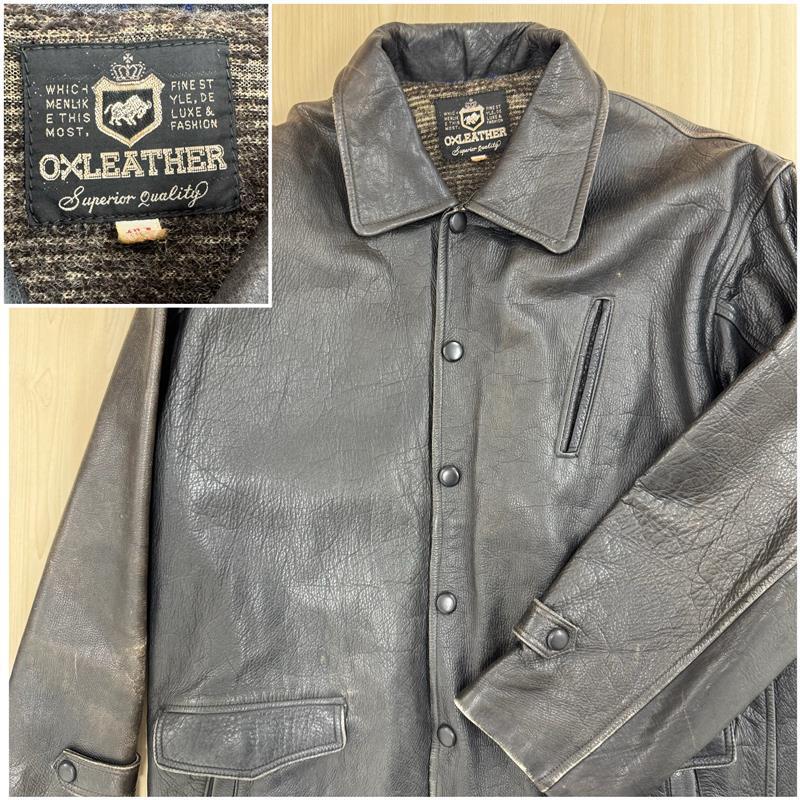 - 【80's】 OXLEATHER leather car coat vintage レザー カーコート ヴィンテージ 80年代 本革 ハーフコート ダメージあり