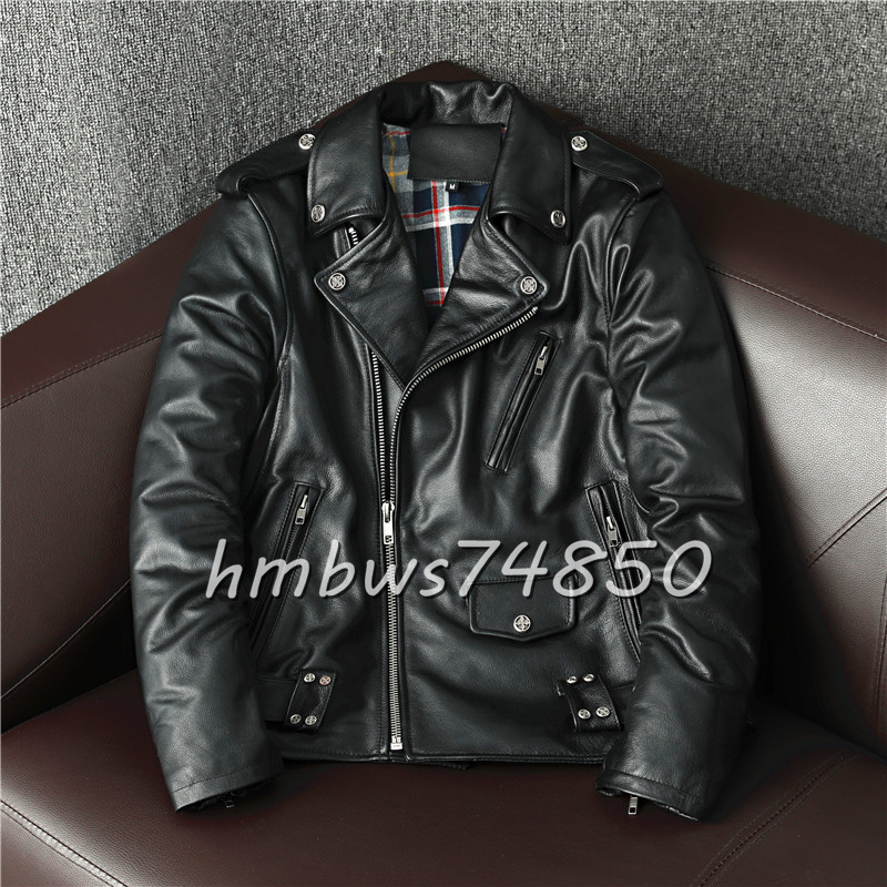 - 美品 メンズ 革ジャン ダブルライダース 最上級 牛革 本革 レザージャケット ハーレー バイクウエア ブルゾン オートバイ S-4XLサイズ