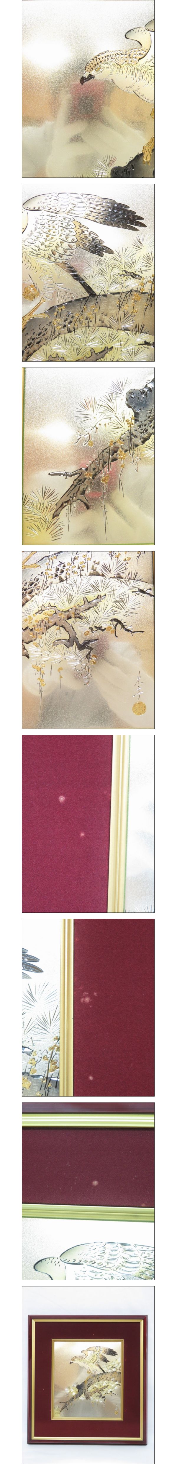 - ◆◇堀口光彦 彫金画 金属工芸 松樹鷹図 タカ 鳥図 金工美術 レリーフ インテリア 額装 額寸/約44.5cm×約41cm◇◆