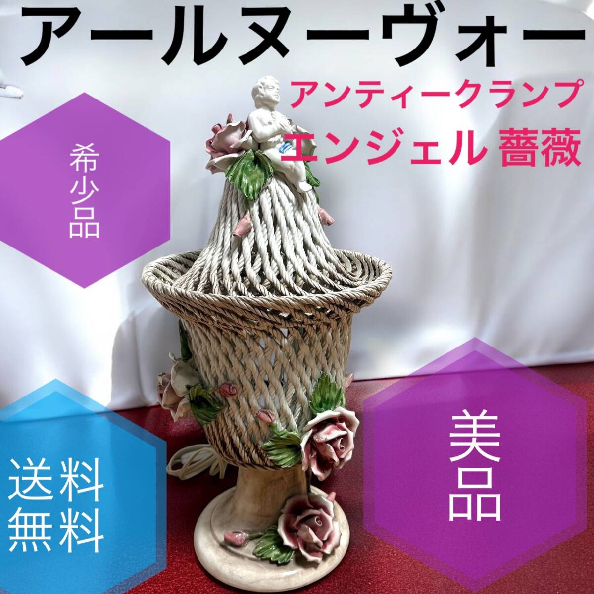 > ☆送料無料 美品 希少 激レア アールヌーヴォー アンティーク ランプ エンジェル 天使 薔薇 陶器 テーブルランプ アール・ヌーヴォー