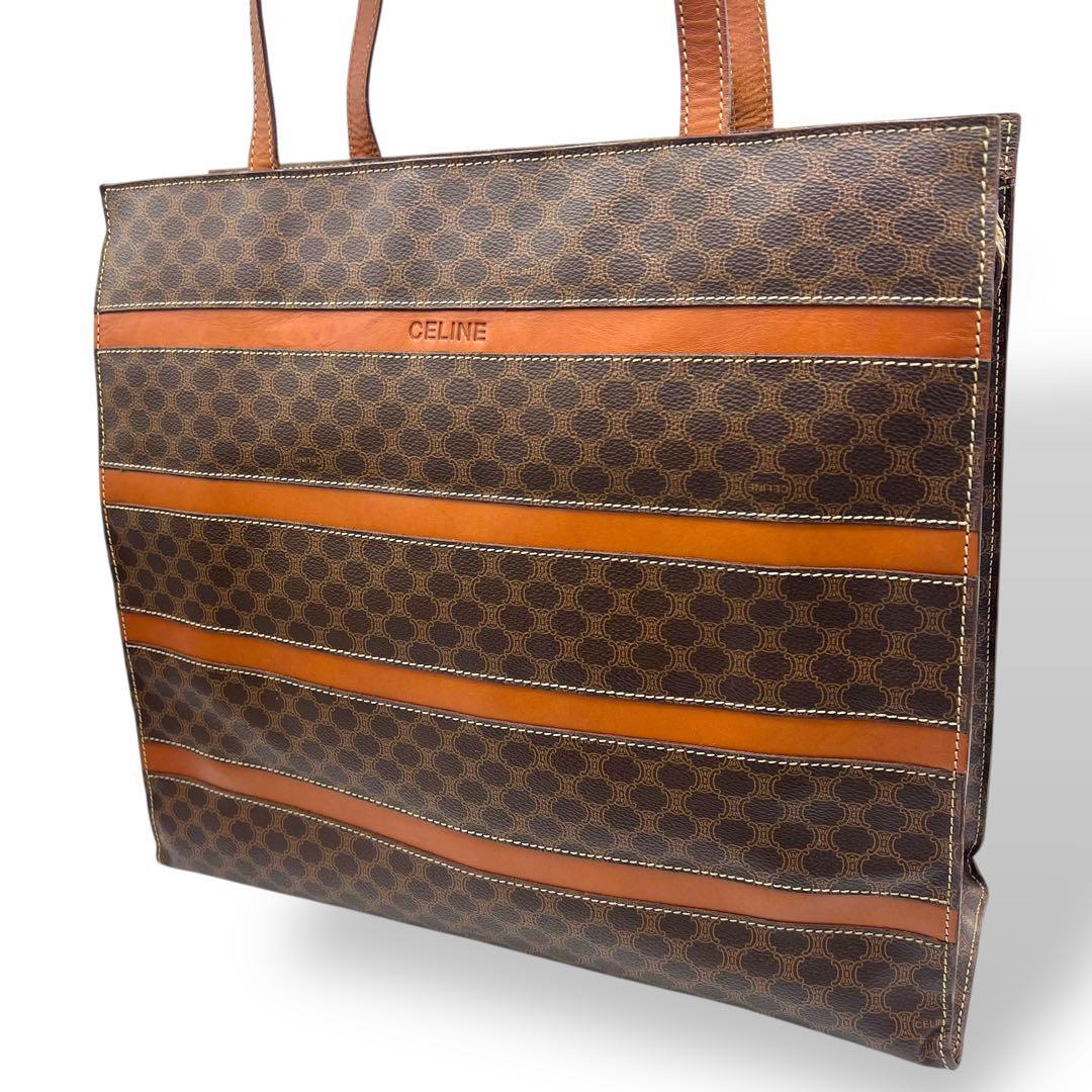> CELINE セリーヌ マカダム ショルダーバッグ トートバッグ PVC レザー 大容量 A4 ブラウン 88