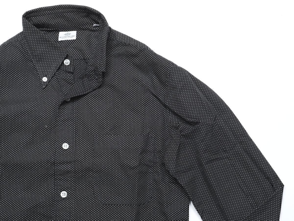 > ★中古★BEAMS HEART ビームスハート★ボタンダウンドット柄メンズ長袖コットンシャツ★M【41-11-0046-819】ブラック黒【本物保証】正規品