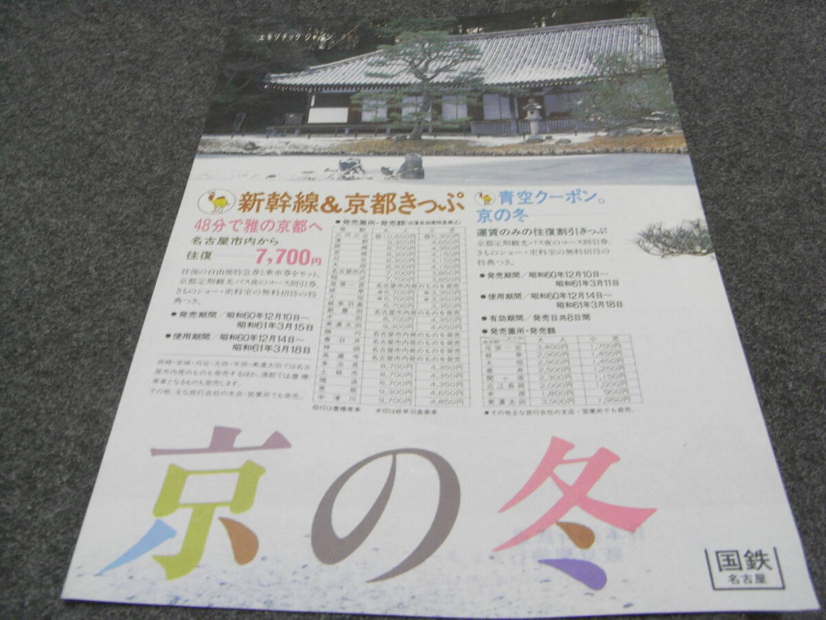 - 国鉄リーフレット 京の冬 新幹線&京都きっぷ 国鉄名古屋 昭和60年・1985年