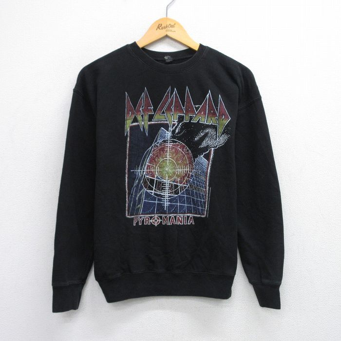 > M/古着 長袖 ロック バンド スウェット メンズ デフレパード クルーネック 黒 ブラック 25sep24 中古 スエット トレーナー トップス