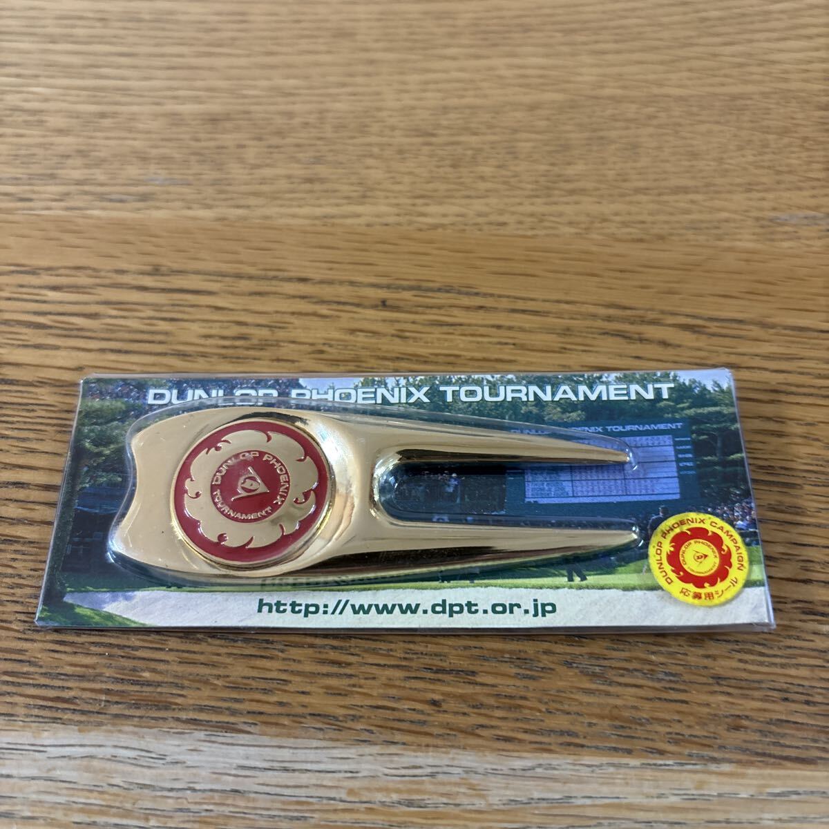 > ダンロップフェニックス ボールマーカー付グリーンフォーク ゴールド×レッド 未使用品 送料込