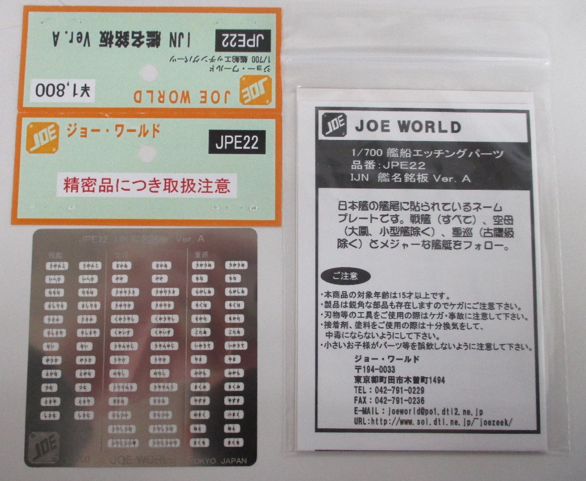 > ジョー・ワールド 1/700 艦船エッチングパーツ JPE22 IJN 艦名銘板 Ver.A 定形外○【ジャンク】agt090820