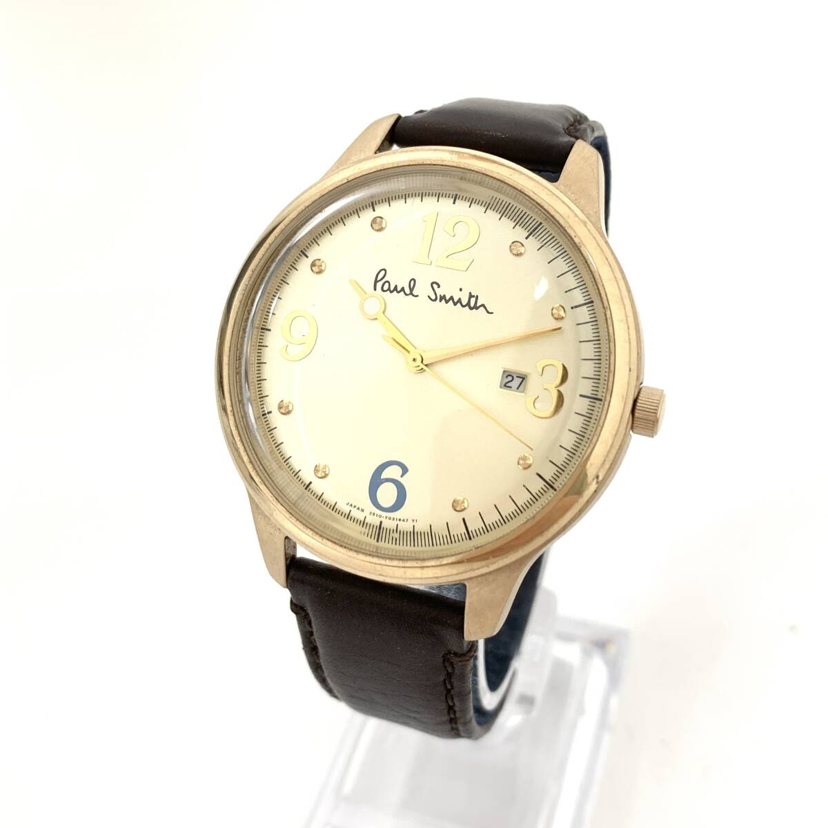 - Z1165△ 1円~! PaulSmith ポールスミス TheCity ザ・シティ デイト 2510-S092493 GP QZ ゴールド文字盤 メンズ 腕時計 稼働 動作確認済