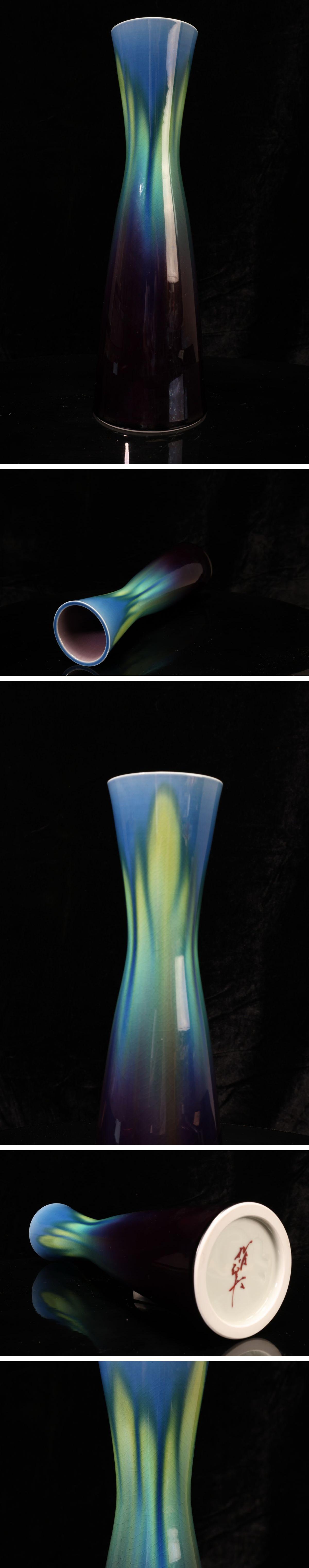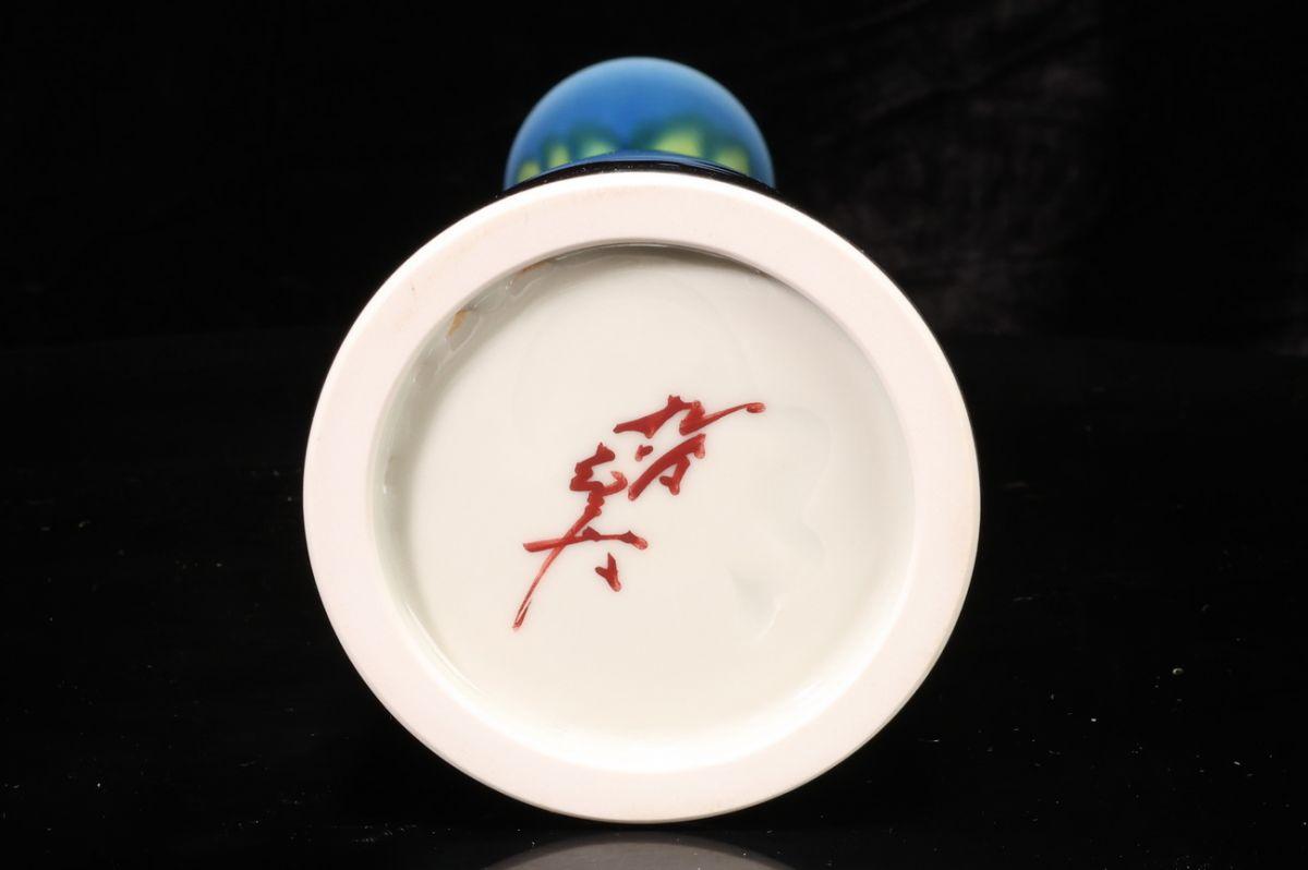 - 【珍品堂】1円から Y43-V08 九谷焼 八十吉作 徳田八十吉 碧明耀彩花入 在銘 花瓶 飾壺 花生 共箱 木箱 花器 陶芸家 美品 古美術 骨董品