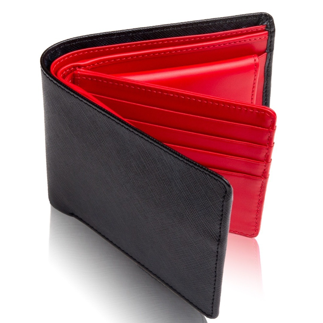 - 新品 二つ折り財布 メンズ 本革 レッド 革師Re-Men's 大容量 カード17枚収納 サフィアーノレザー ナッパレザー 小銭入れ ウォレット 贈り物