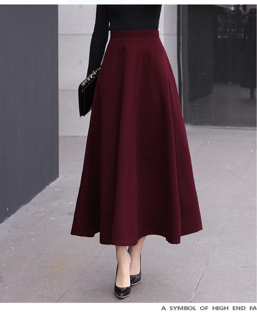 - ロングスカート バーガンディ フレアロングスカート レッド 送料無料 新品
