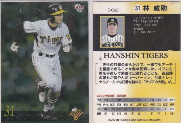 - ●2008BBM/阪神 【林 威助】 通常版 キラパラレル No.T-062 R2