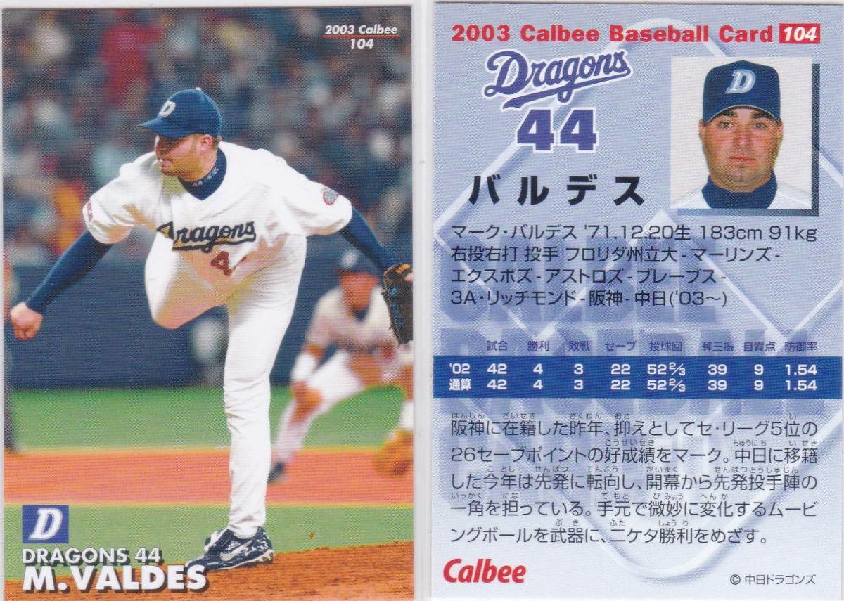 > ●2003カルビー【バルデス】BASEBALL CARD No.104:中日 R2