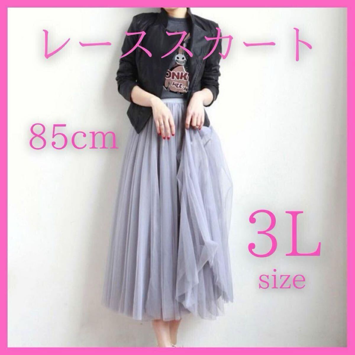 - 3L チュールスカート レース シフォン 可愛い ロング エレガント 大人