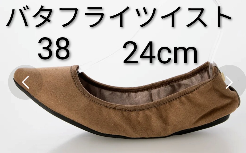 - バタフライツイスト折りたたみフラットシューズ38新品保存袋付モカ茶24cm
