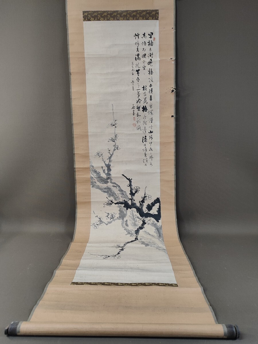 - k136 【作者不詳】梅図 中国美術 掛軸 紙本 中国 書 時代物 古美術 骨董品 日本画 落款 作者印 箱無 模写