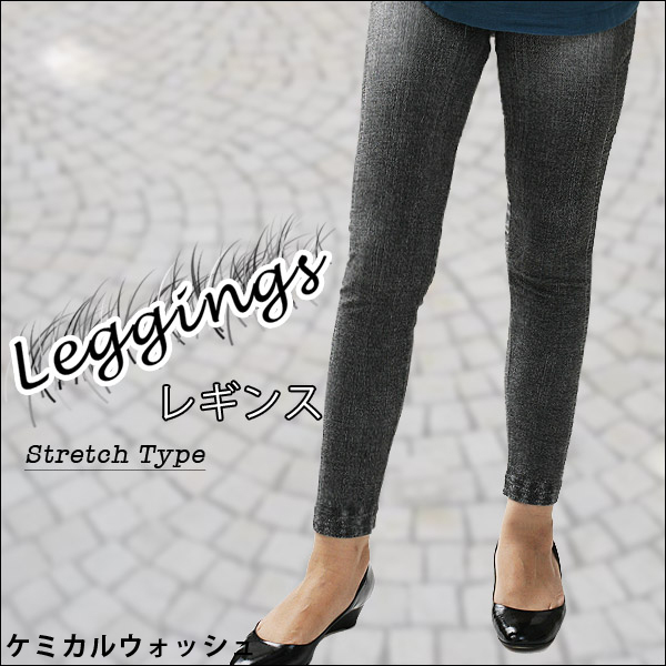 - 【全方向ストレッチ!【ケミカルウォッシュ レギンス】スッパッツ