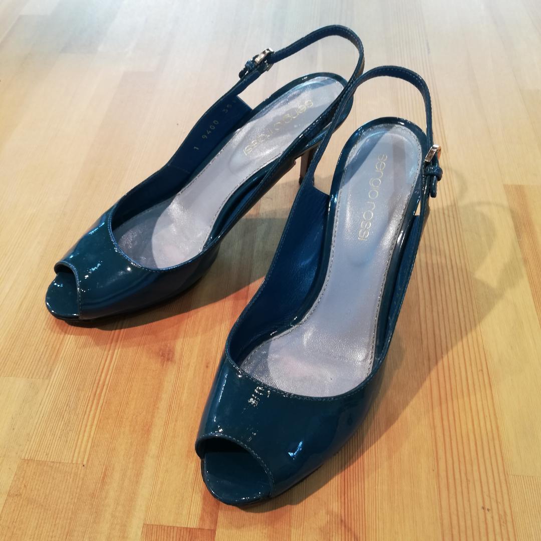 - 22.5cm セルジオロッシ ブランド ミュール サンダル エナメル オープントゥヒール 女性 レディース 靴