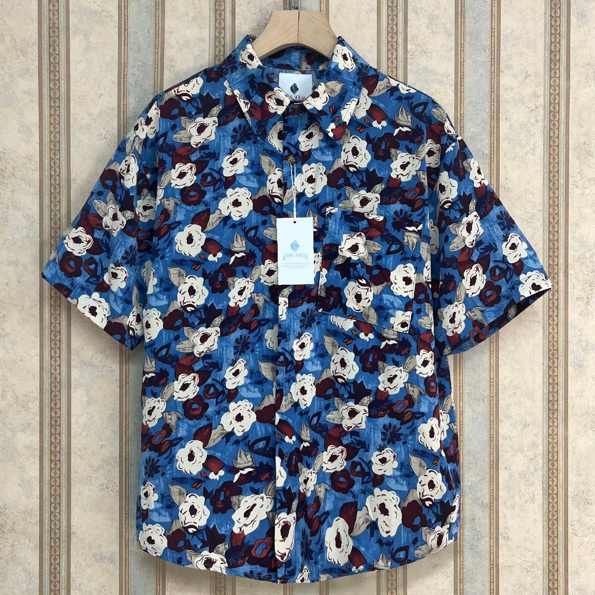 > 上品 定価3万 FRANKLIN MUSK・アメリカ・ニューヨーク発 半袖 アロハシャツ シャツ シルク混 ソフト 花柄 派手 リゾート 海 夏 サイズ2