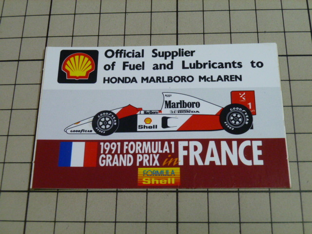 > 正規品 1991 Shell HONDA MARLBORO McLaren F1 ステッカー 当時物 です(85mm×55mm) シェル ホンダ マールボロ マクラーレン フォーミュラ
