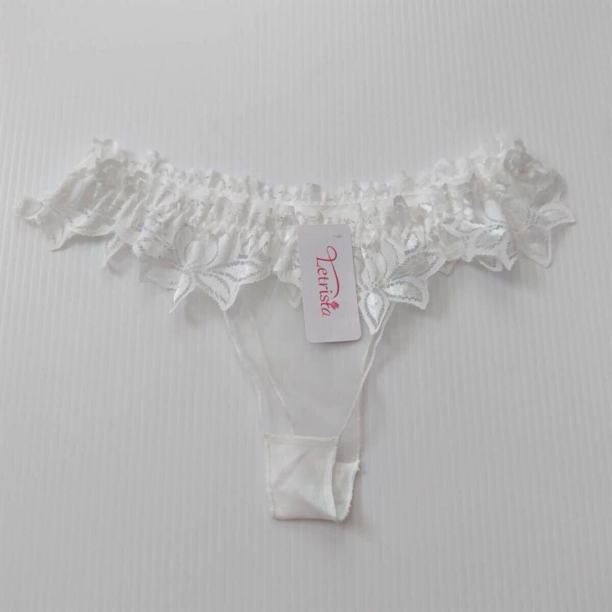 - Tバックショーツ 白 シースルー セクシー 花柄 ヌード ショーツ レース