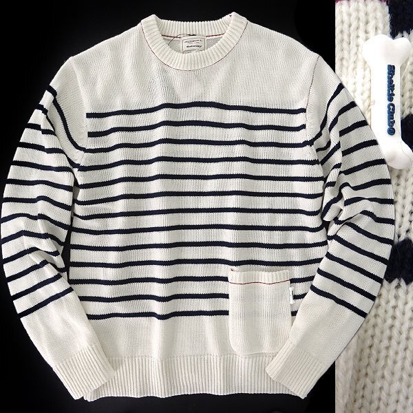 - 新品 シェルティークラブ ボーダー クルーネック ニット M 白 【SH444339_7_M】 秋冬 Sheltie Club ウール混 洗える ウォッシャブル