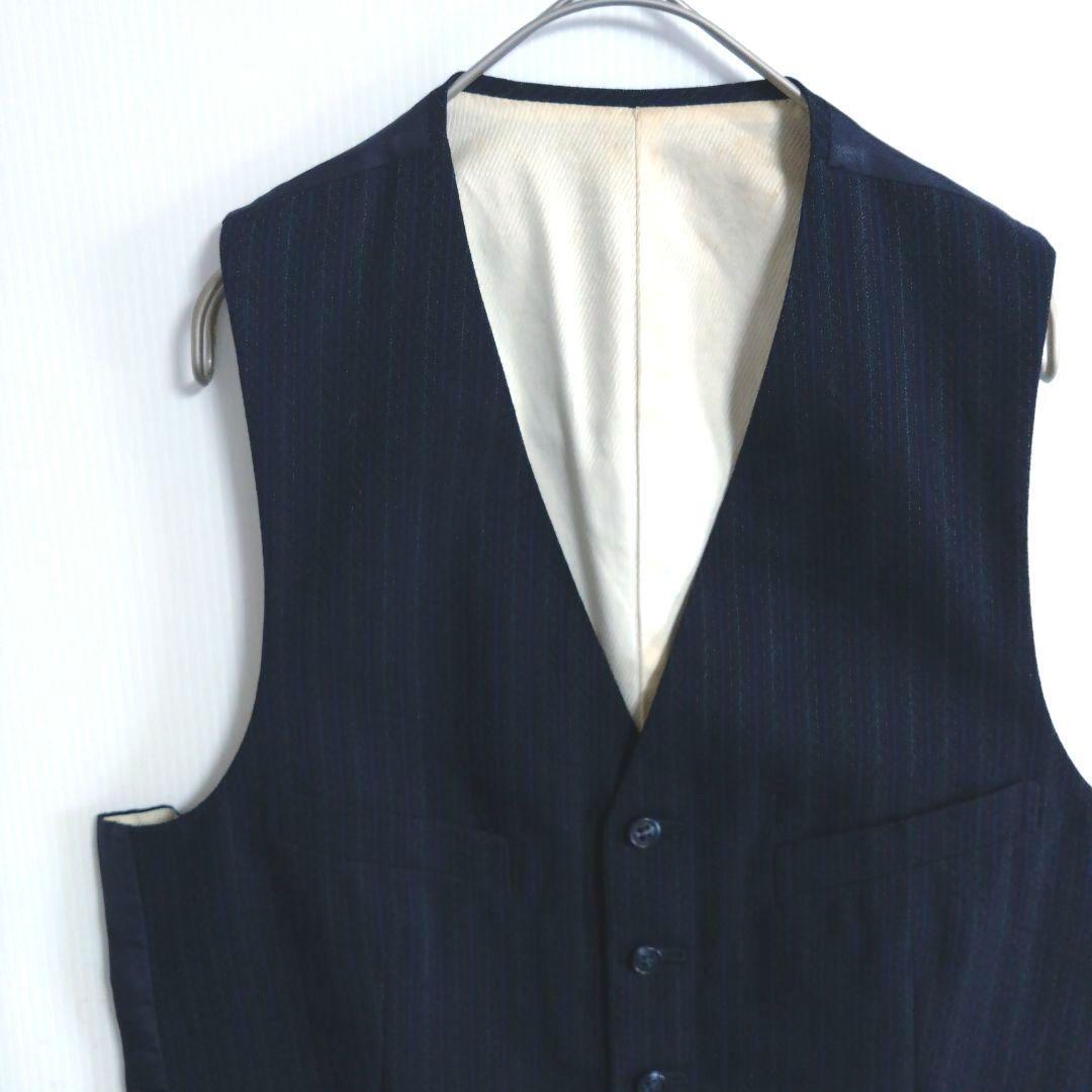 - 166 スーツベスト M 紺 灰 縦縞柄 ジレベスト