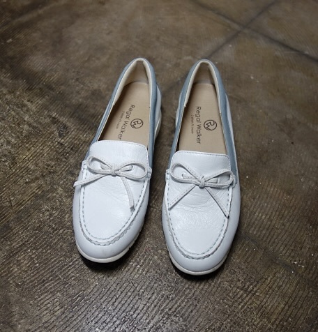 > TK 価格17,600円 新品近 リーガル REGAL WALKER デッキシューズ スニーカー スリッポン 22 EEE レディース 白 グレー