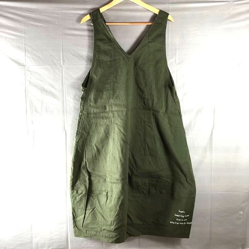 - パーソンズ PERSON'S ジャンパースカート ロング デニム生地 英字刺繍 コクーンシルエット グリーン系 カーキ Lサイズ 2025090300036