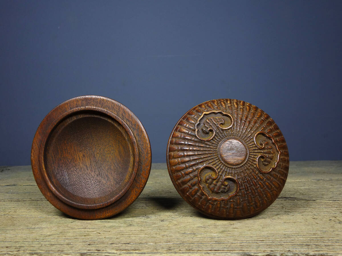 - 『館蔵珍品 花梨木 細密彫 如意紋 香盒 印泥盒 置物 賞物』稀少珍蔵品 古賞物 貴重物品 収蔵品 中国古美術 時代物 古董品龍