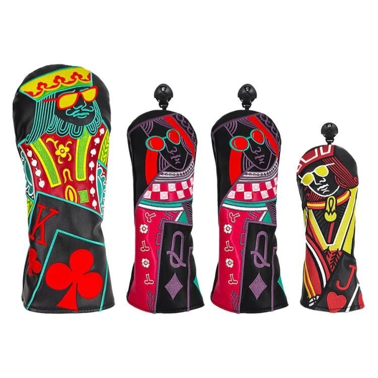 - 送料無料 4点セット ゴルフ ヘッドカバー 3.5共通FW DW UT ポーカー ジャック クイーン キング パター ドライバー gf324
