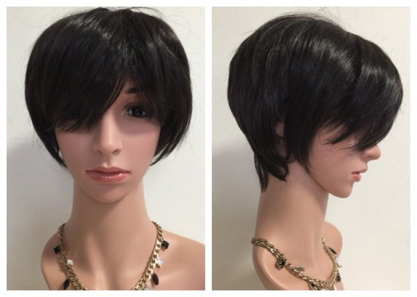- OWG28-2 お出掛け美人フルウイッグ 地肌付き ブラックショート フルウイッグ おしゃれかつら 白髪隠しにも