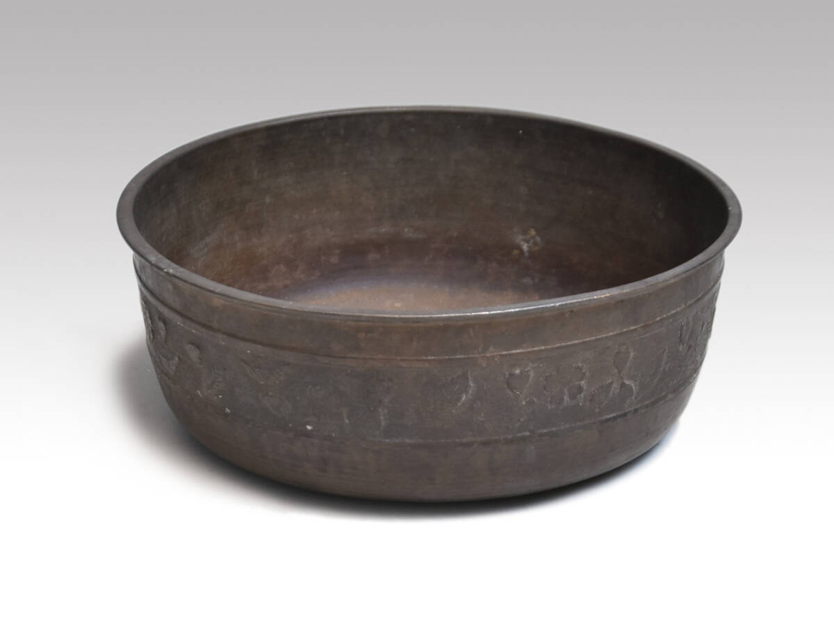 - 古い時代の唐胴 平建水 桜花葉帯文入り 茶道具 金属工芸 y2875