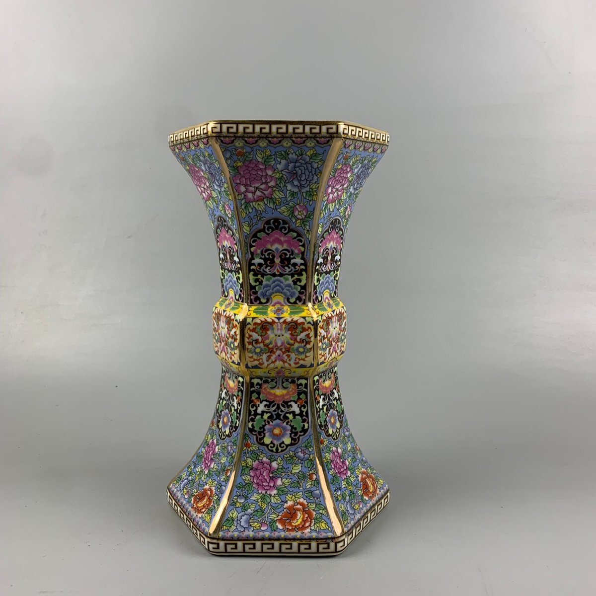 - 極美品 ! 琺瑯彩 花瓶 六方花瓶 花柄 観賞 景徳鎮 装飾 賞物 中国陶磁 中国美術 コレクション fgcq005