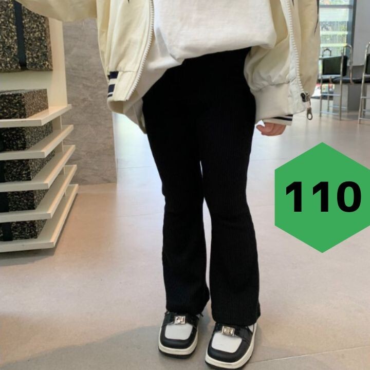 - キッズ 子供 フレアパンツ リブ 110 ブラック 韓国 ダンス 美脚 レギンス