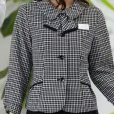 - 美品 事務服 ブラウス シャツ リボン チェック 大きいサイズ 21ABR ジャケットとしても