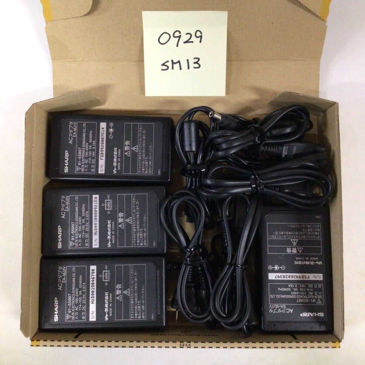 > (0929SM13)送料無料/中古/SHARP シャープ/EA-MJ1V×2/19V/3.16A・EA-MJ2V×2/22.5V/2.67A/純正 ACアダプタ 4個セット