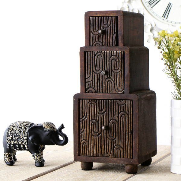- ミニチェスト 木製 卓上 小物入れ 引き出し おしゃれ 彫刻 脚付き 3ドロアーカービングミニチェスト 送料無料(一部地域除く) ras7568