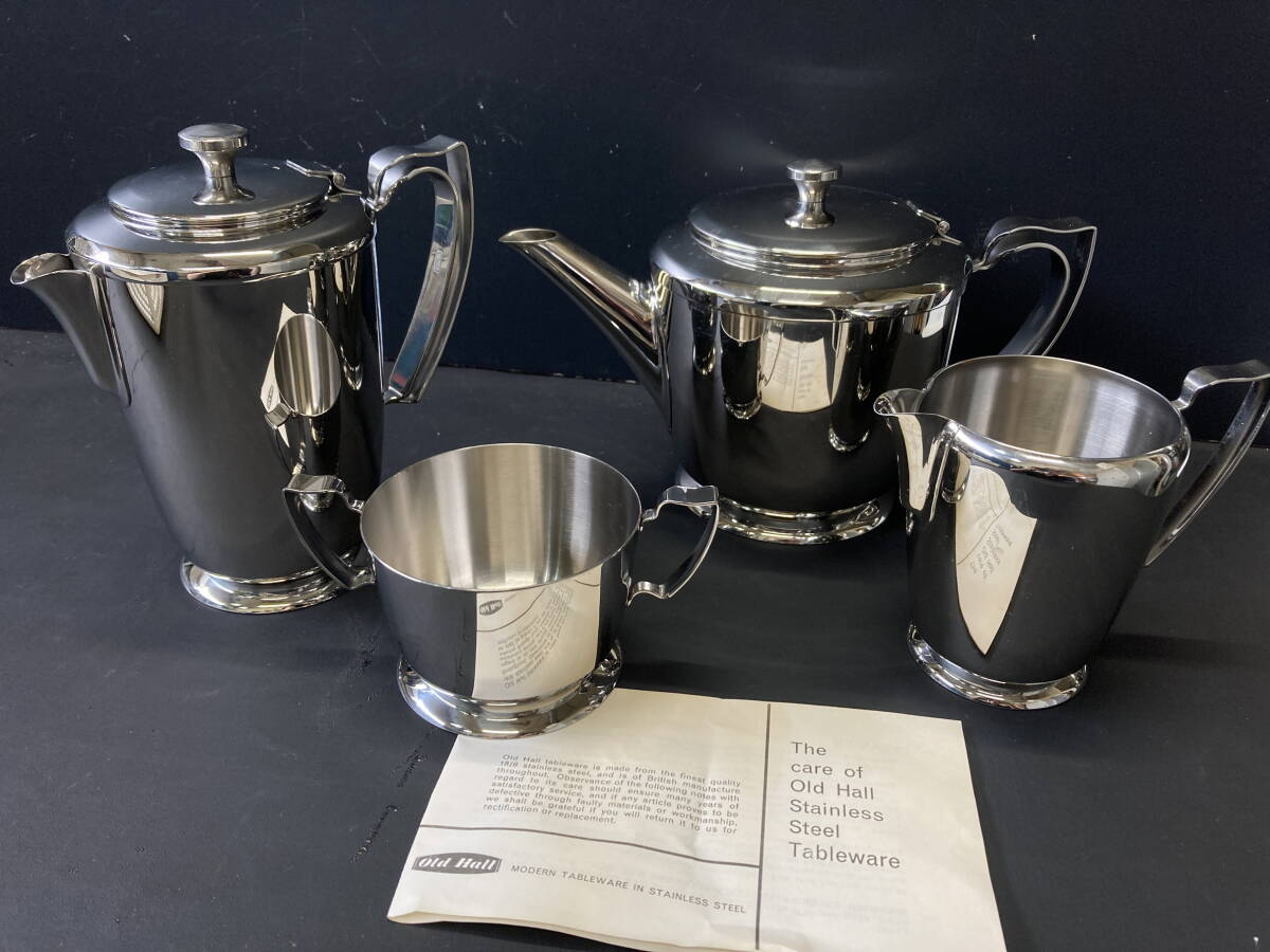 - 10-M10/1-80 Old Hall オールドホール モダン 食器 4点 セット ステンレススチール製 コーヒー ミルク ティーポット イギリス ヴィンテージ