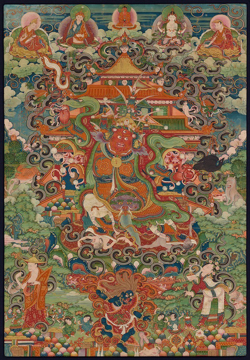 - 唐 乃護法 大護法王 白哈爾 工筆仏画人物高精細画芯絹布54×78 cm芸術装飾画 掛け軸 仏画 特殊技法高級印刷