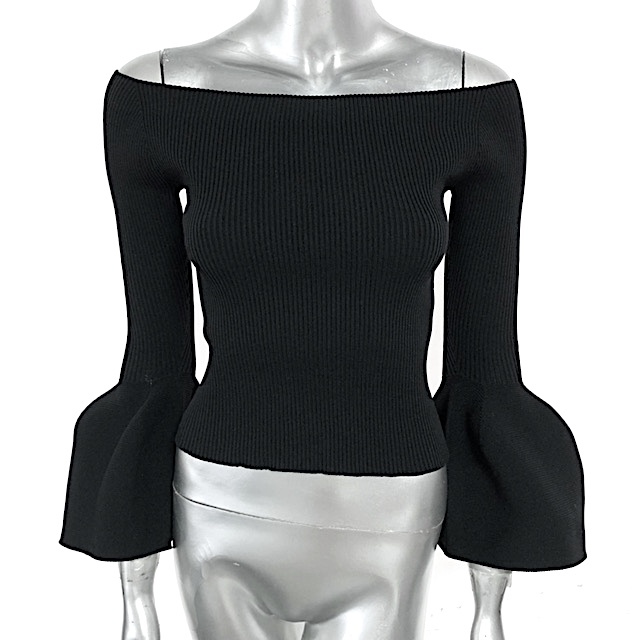 > ☆二点落札で送料無料!2A48【ほぼ未使用】CFCL POTTERY オフショルダートップス 黒 フレアスリーブ リブニット ブラック フォーマル 1 S-M