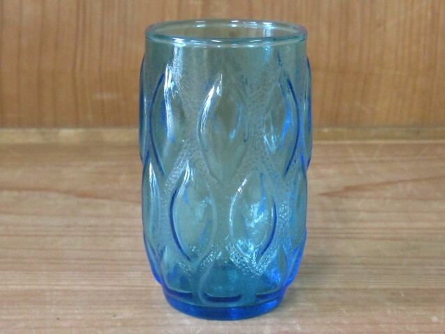 - ◆レトロなコップ:2:◆『よろけ:網目:楕円:雫』◆ウラン入り◆凹凸◆ガラス◆マリンブルー◆保存状態良好◆