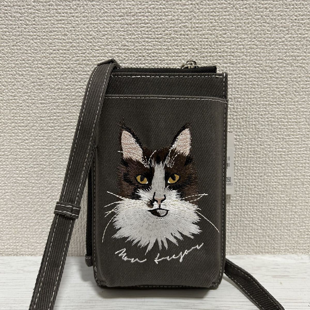 - 新品未使用 frou frou レディース 斜め掛け お財布ショルダーバッグ ポシェット デニム キャンバス 猫柄 ネコ柄 動物 刺繍 可愛い