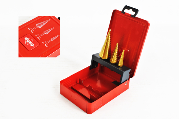 - ▼未使用保管品 RUKO HSS ステップドリル 3本組セット ケース付属 ドイツ製 タケノコドリル たけのこ 穴あけ 金属板などに)P